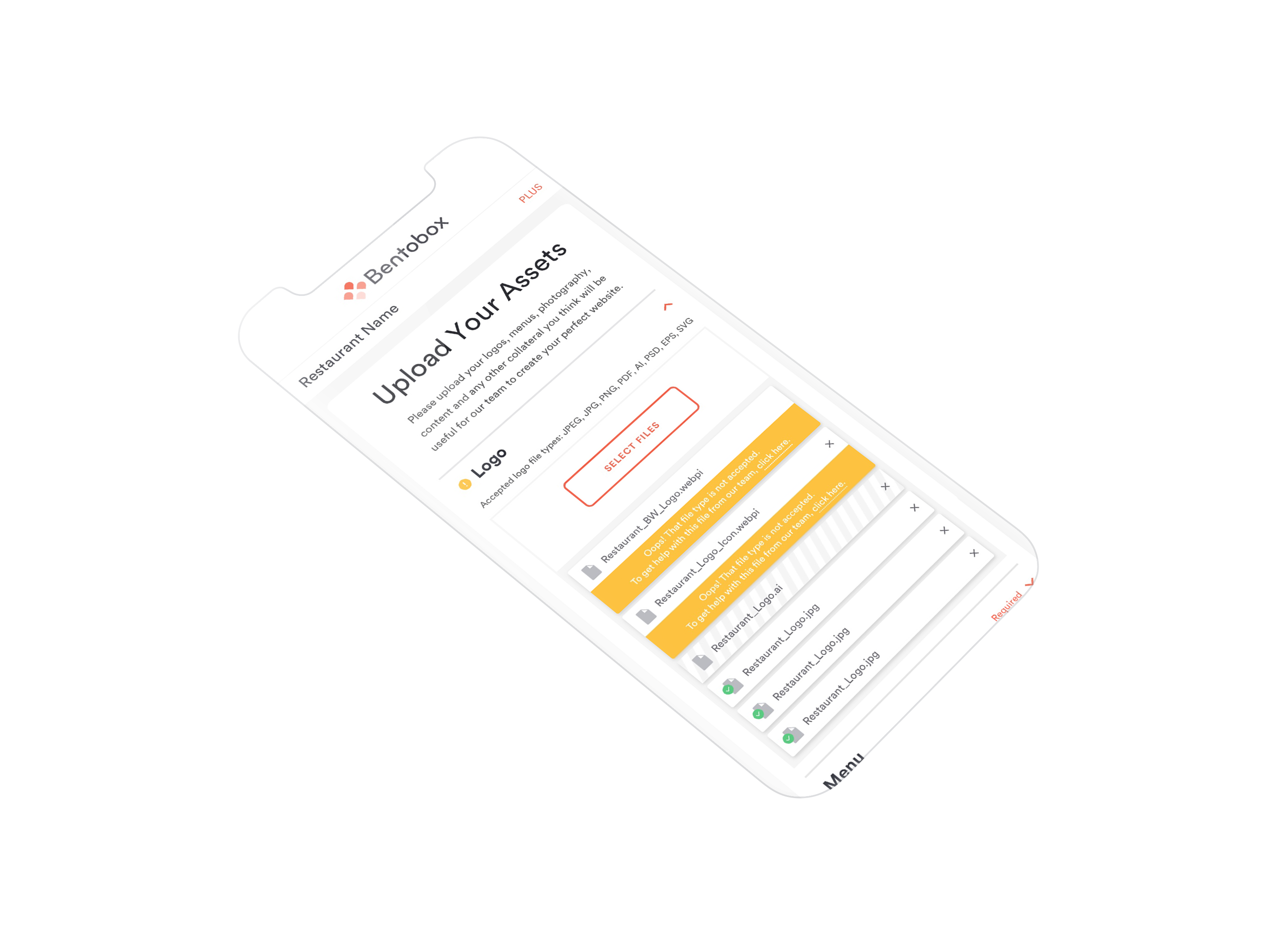 We began with basic Word document surveys for restaurant and client onboarding, but this quickly highlighted the need for a more organized file uploader and a more engaging, intuitive space for clients to complete content and design surveys.
